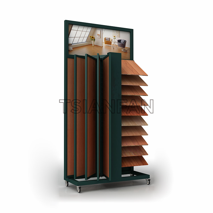 Product description: If you need this flip wood floor stand WF908, please choose our company for more information. This product can also be called display frame,wood flooring showroom display.